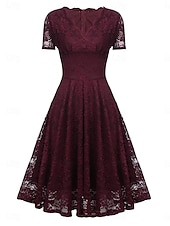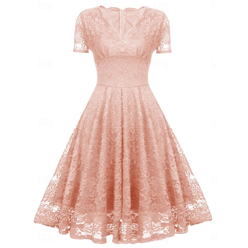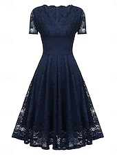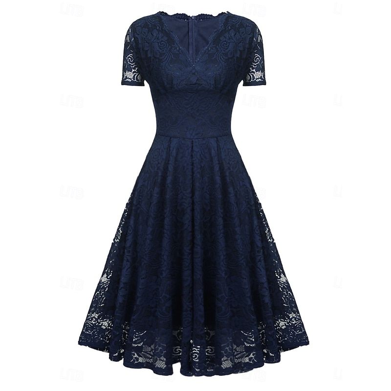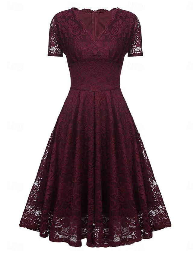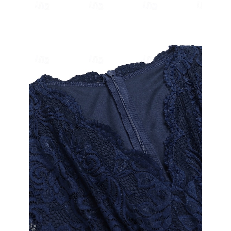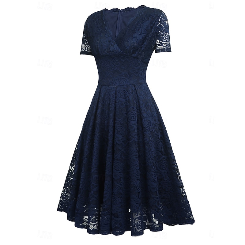 More information about Women's Midi Dress Lace Dress Cocktail Dress Wedding Guest Dress Chiffon Elegant Fashion Modern Outdoor Cocktail Party Regular Fit Plain Short Sleeve V Neck Pink Wine Navy Blue Summer Spring Fall