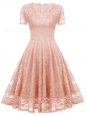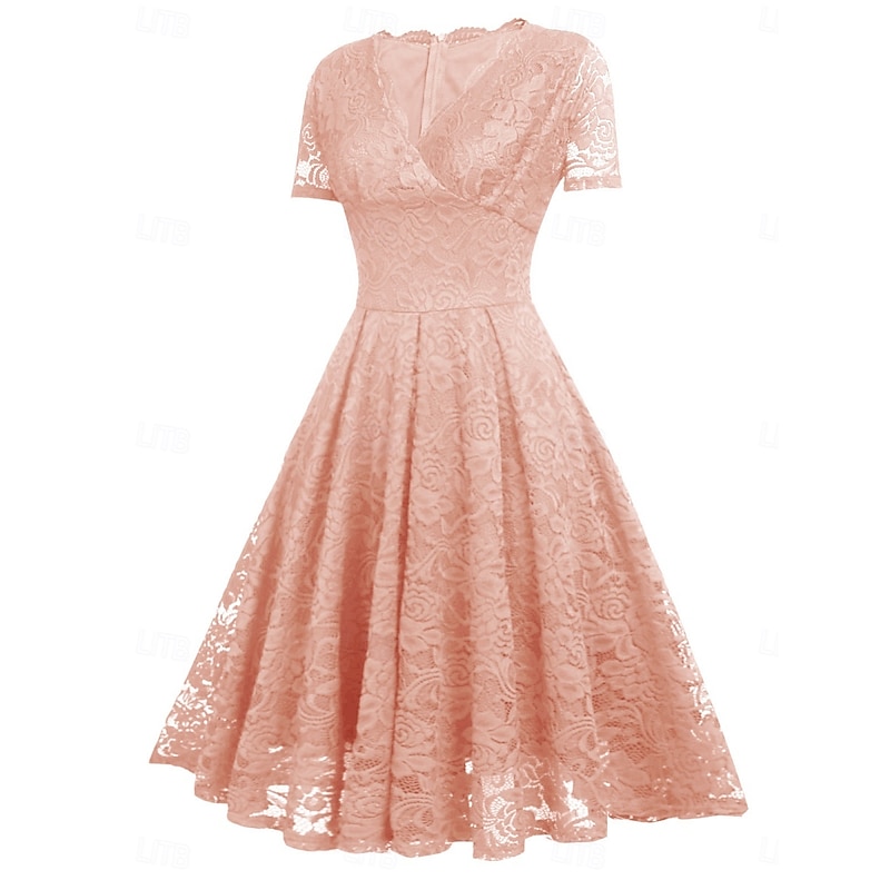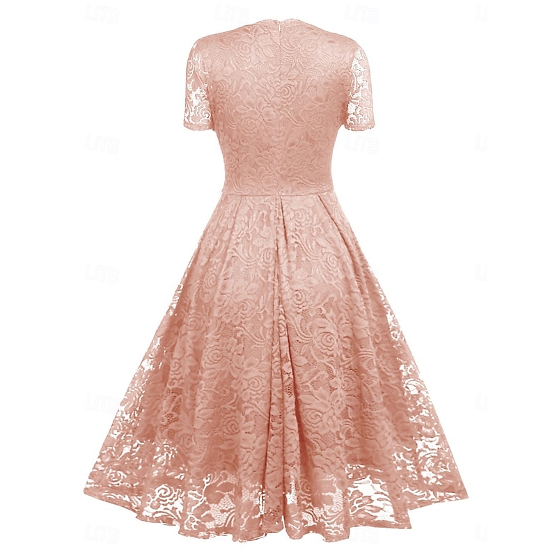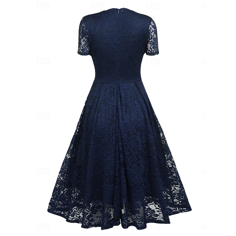 Highlights - Perfect for spring, summer, and fall seasons - Made with high-quality polyester fabric - Features a stylish short sleeve design - Specifically designed for women - Ideal for cocktail parties - Stunning lace dress with patchwork design - Elegant V neck neckline - Midi dress length for a sophisticated look