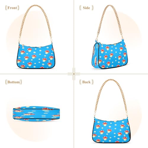 Shoulder Bags for Women Cute Mushrooms Tote HandBag Shoulder Bags purse with Chain Zipper Closure 5