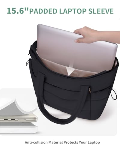 • 【Stay Organized, Start Stress-Free】 Start your day without the chaos –The Laptop Tote with 1 quick-access front pocket for keys or badge, 2 inner mesh pockets for small items, a spacious main compartment, a padded 15.6" laptop sleeve, 2 side pockets for 32oz tumbler and a secure back pocket keep everything in place. No more digging, just grab and go.