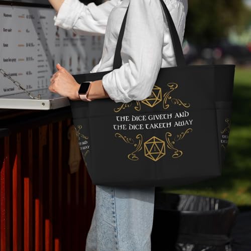 More information about Dice Giveth Taketh Away Tabletop Rpg Gaming Large Capacity Waterproof Beach Travel Bag With Multiple Pockets - Sandproof Tote For Swimming & Camping