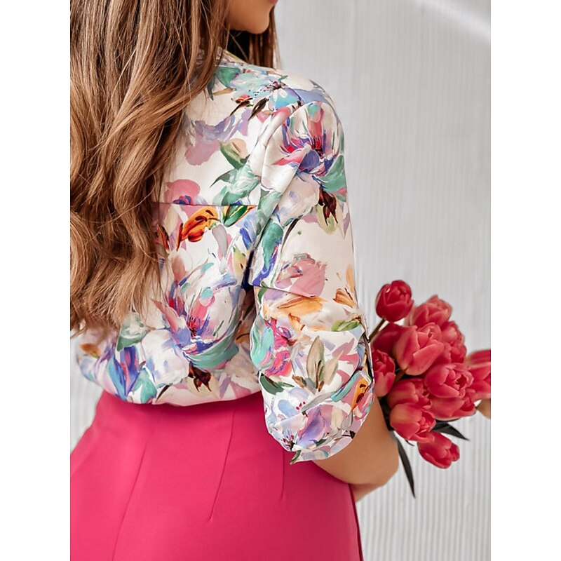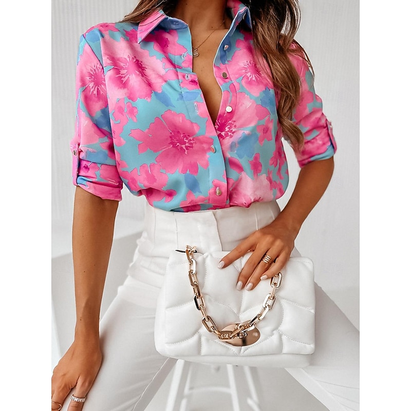 Women's Shirt Blouse Casual Floral Buttons Print Long Sleeve Regular Tops Shirt Collar Vacation Daily White Pink Red Blue Khaki Spring & Summer