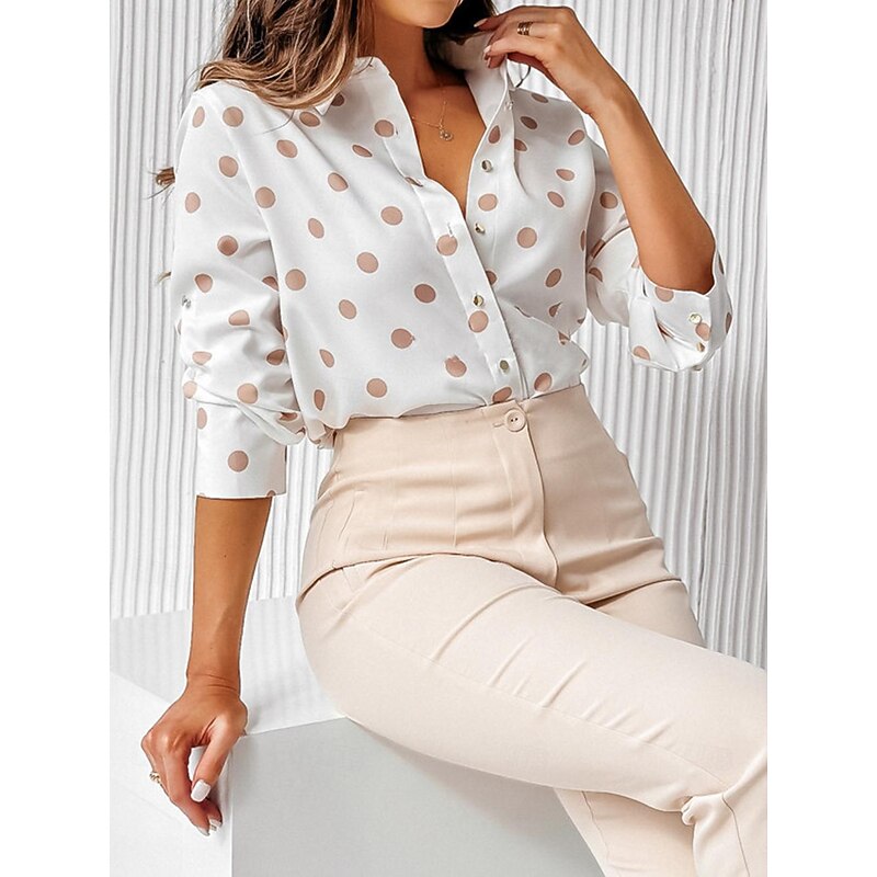 Highlights [Fabric] Crafted from lightweight, silky polyester fabric, this blouse ensures comfort and breathability, making it an ideal choice for spring and summer wardrobes. The polyester adds a hint of micro-elasticity, contributing to a fit that flatters various body types. [Fit and Style] Designed with a regular fit, this women's blouse features a enduring shirt collar and long sleeves, combining casual elegance with a relaxed look. The regular length makes it versatile enough to be tucked in or worn loose over your favorite trousers or skirts. [Design Highlights] This blouse boasts a vibrant floral and polka dot pattern that pops against a crisp white background, offering a lively, colorful appearance. The button-down front adds a traditional touch, while the 3D print technology ensures vibrant colors that last, enhancing the overall appeal. [Occasions] Perfect for vacations, daily wear, or casual outings, this blouse transitions seamlessly from day to night. Whether you're heading to a casual brunch or an evening out, it pairs well with various outfits, adding a touch of elegance and femininity. [Size Range] Available in a wide variety of sizes, including S, M, L, XL, and 2XL, this blouse is designed to accommodate different body shapes and preferences, offering a comfortable and personalized fit for everyone. Perfect for everyday use. top-grade materials and excellent craftsmanship ensure long-lasting durability.
