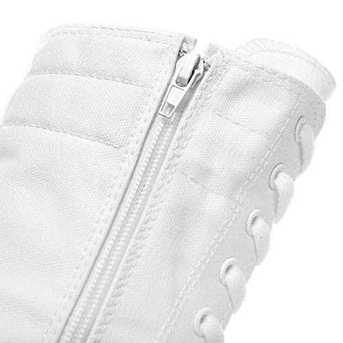 ANUFER Women Fashion Canvas Dance Boots Knee High Bicycling Boots Girls Fancy School Shoes White 905 US7
