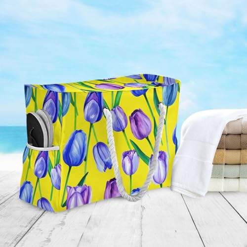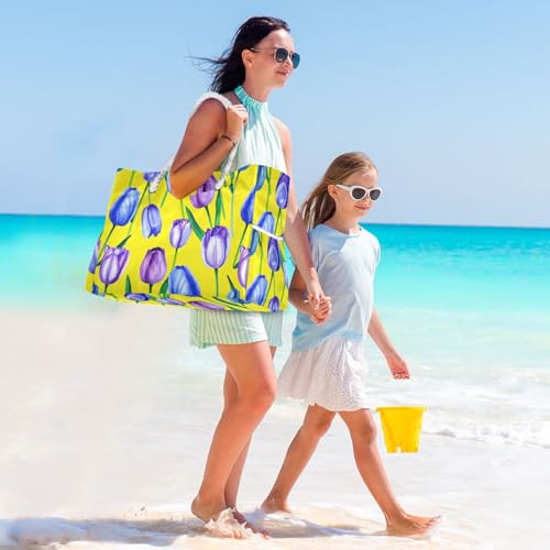 HOT ! Blossom Bright Yellow Beach Tote Bag for Women Extra Large Beach Bags Swim Pool Bag Waterproof Travel Tote Bags with Zipper for Vacation Essentials Gym Grocery Yoga Nurse