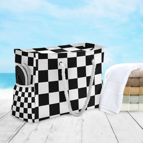 Black and White Checkered Pattern Carry On Bags Waterproof Sandproof with side pockets Large Tote Bag Large for work 1