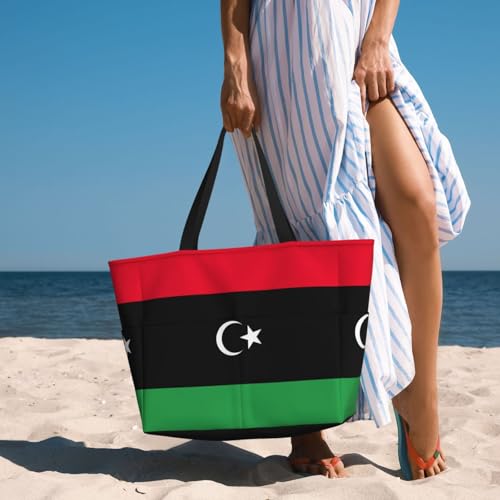 HOT ! Libyan Flag Extra Large Tote Bag For Women,Foldable Beach Bag With Pocket Weekender Travel Overnight Bag