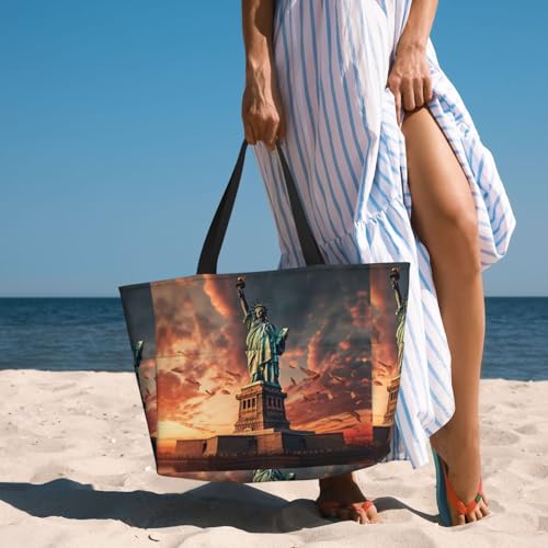 • Two Ways To Carry: The Statue Of Liberty In Nyc Beach Bag For Women With Double Handles Makes It More Comfortable For You To Carry. Not Only Can Switch Up Your Style Effortlessly, Also Minimize Your Stress. The Long Shoulder Straps Can Relieve Weight, So Even When The Bag Is Fully Loaded, It Won'T Pressure On Your Shoulders.