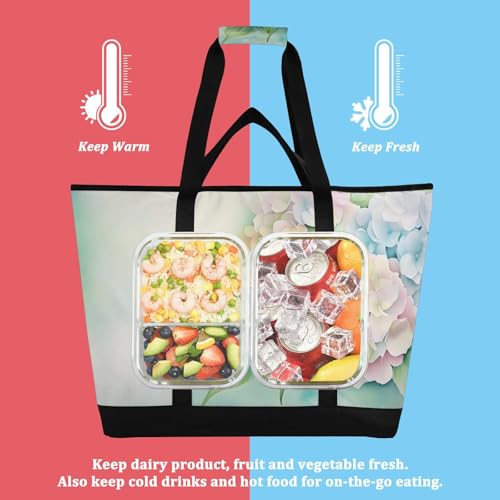 HOT ! Large Insulated Tote Bag Hydrangea Colorful Retro for Grocery Shopping Reusable Tote Bags for Women Men, Cooler Bag with Zippered Top & Handles for Beach Picnic Travel