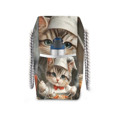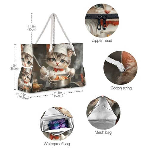 HOT ! Cute Cat Chef Beach Bag for Women Large Beach Tote Bag with Zipper for Travel Vacation