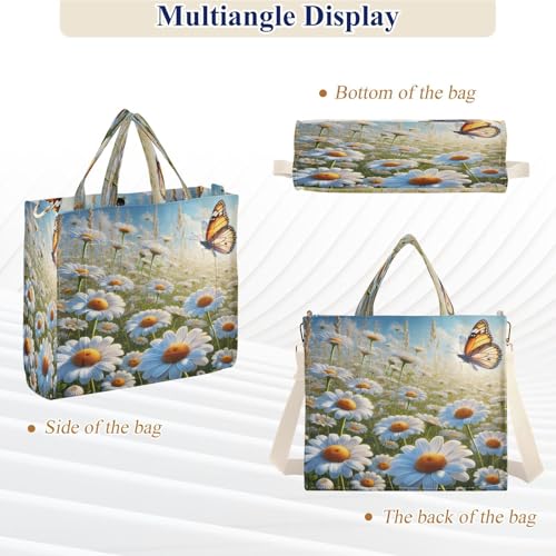 Emelivor White Daisies Butterfly Tote Bag for Women Large Corduroy Canvas Tote Bag Teacher Crossbody Bag for Travel S 5