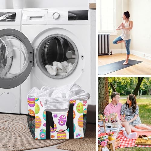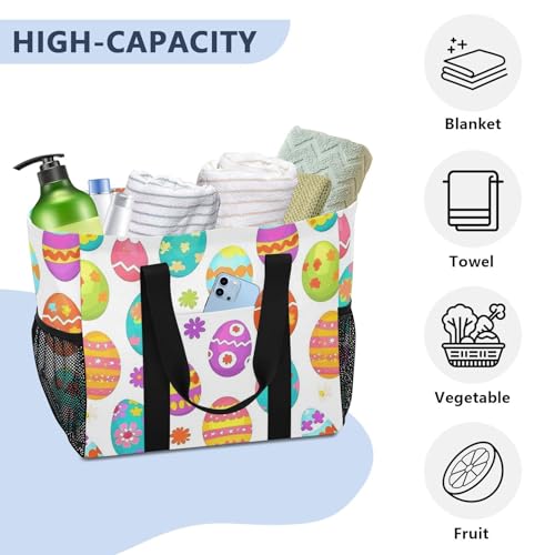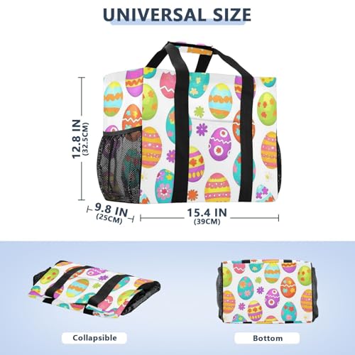 JUNZAN Cute Easter Utility Bag For Trunk Foldable Beach Tote Bag With Pockets Grocery Bags Reusable Canvas Car Tote 7