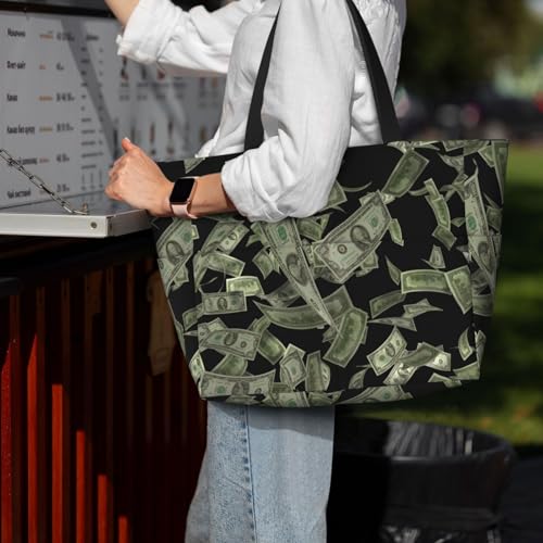 Dollar Sign Money Print Roomy Beach Tote Bag For Women, Large Travel Bag For Weekend Travel,Pool 6