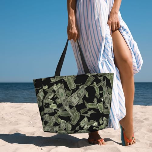 Dollar Sign Money Print Roomy Beach Tote Bag For Women, Large Travel Bag For Weekend Travel,Pool 7