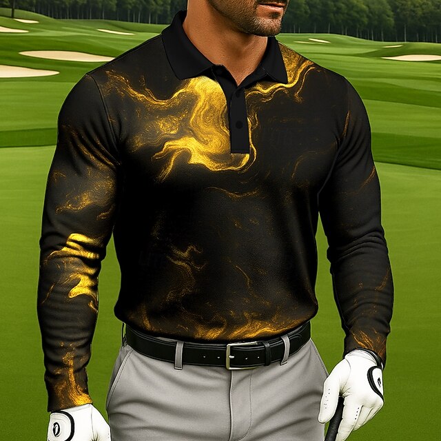 More information about Men's Smoke Geometic Polo Long Sleeve Polo Shirts Lapel Casual Athleisure 3D Print Buttons Spring Fall Winter Black White