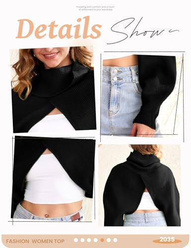• Fabric: This womens turtleneck bolero sweater is made of high quality fabric, comfortable to wear, soft and skin friendly, is a high quality top, you will like.