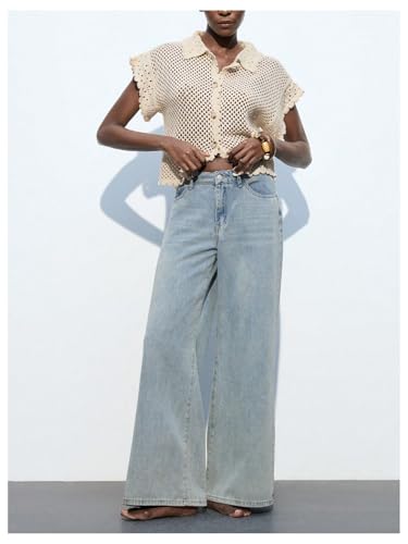 HOT ! GORGLITTER Women's Summer Oversized Cardigans Short Sleeve Lightweight Button Up Crochet Tops