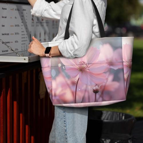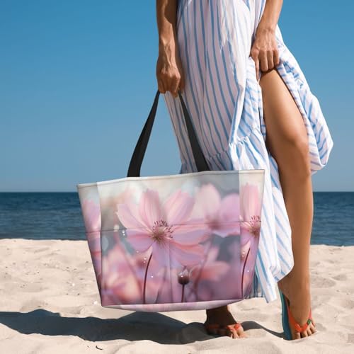 • Material : The Pink Flower print beach tote made of polyester fiber , waterproof , soft and light , comfortable to carry.