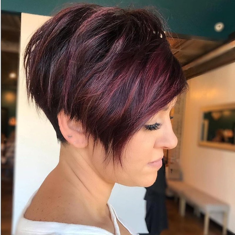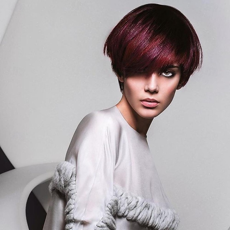 $64.99 - Short burgundy pixie wigs with bangs for black women 1B 99J 2025. Shop for cheap Human Hair Capless Wigs online? Buy at lightinthebox.com on sale today!