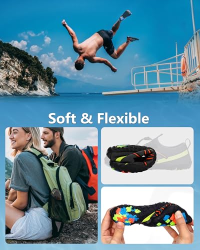 • WIDE TOE BOX & ANTI-COLLISION: These Water Shoes Women Men are designed with a spacious toe box for natural toe splay and reinforced anti-collision bumpers around the front. Whether hiking rugged trails or navigating slippery rocks, these swim beach shoes protect your feet from impacts.