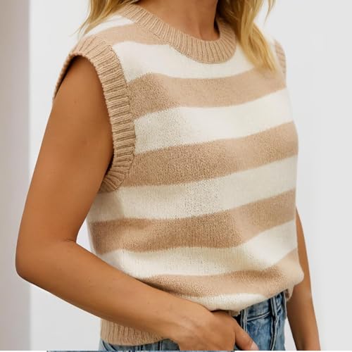 GodLover Womens Cap Sleeve Tank Tops Striped Crew Neck Casual Loose Fit Spring Summer Pullover Knit Sweater Vest Sleeve Knit 4
