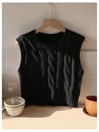 • Feature: Cable Knit, Sleeveless, Round Neck, Plain, Slim Fit, Crop Short Length, Sweater Vests for Women