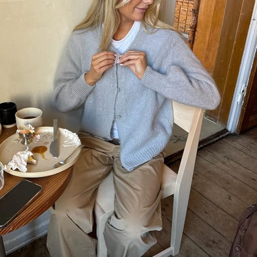 Women Y2K Button Down Crop Sweater Long Sleeve Cardigan Lightweight Open Front Knit Sweaters Fall Cardigans 6
