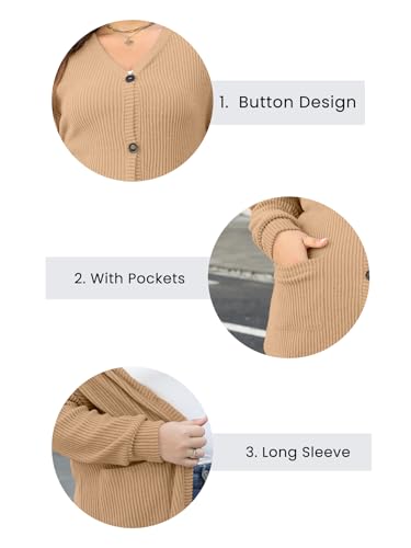 Celkuser Women's Plus Size V-Neck Cardigan Sweater Lightweight Button-Down Open Front Oversized Knit with Pockets 4
