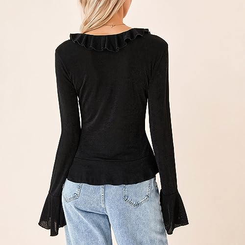 • Package:1* Women's Ruffle V Neck Button Down Shirt Slim Fit Flare Long Sleeve Blouse Y2K Going Out Crop Top Streetwear