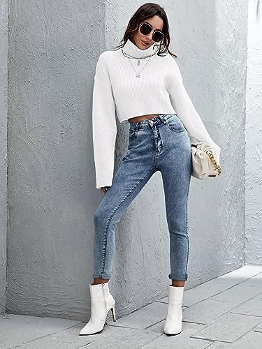 HOT ! Floerns Women's Turtle Neck Long Sleeve Knitted Pullover Sweater Crop Tops