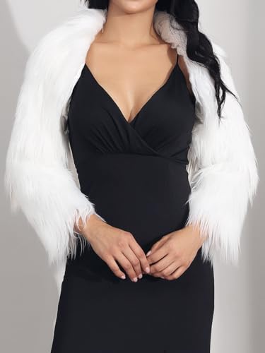 EASEDAILY Women's Bolero Shrug Fur Jacket Long Sleeve Crop Top Faux Open Front Cardigan Evening Dress Cover Up for Bride 5
