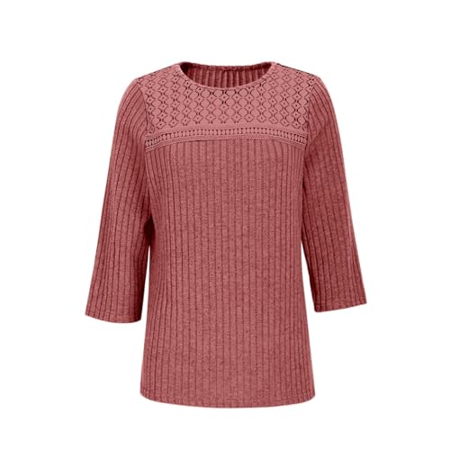HOT ! Women Ribbed Knit Sweaters Fashion Hollow Out Eyelet Crewneck Sweater Casual Cozy 3/4 Sleeve Lightweight Pullover Top