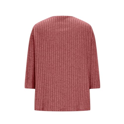 Women Ribbed Knit Sweaters Fashion Hollow Out Eyelet Crewneck Sweater Casual Cozy 3/4 Sleeve Lightweight Pullover Top 5