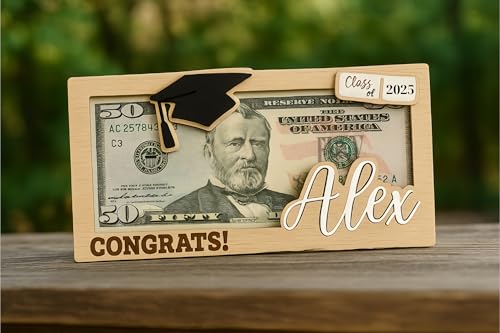 • CUSTOM GRADUATION MONEY HOLDER: Make the graduation celebration one of a kind with a personalized name money display. This wooden frame, which features a laser-cut name for personalization, holds a bill of your choice. It’s a memorable option that serves as an alternative to conventional gift cards, making it suitable for those graduating from high school or college. Demonstrate your pride with a memento they will value for years to come.