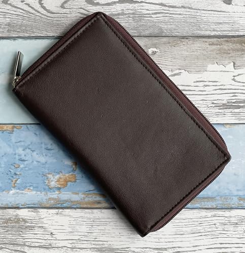 HOT ! RFID Premium Soft Cow Leather Long Bifold Zip around Credit Card ID Holder Travel Organizer (Brown)