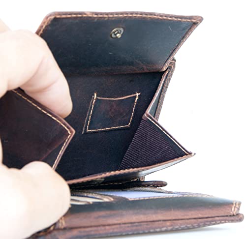 • Men's Oiled Dark Brown Leather Wallet Made of Sturdy Genuine Cowhide