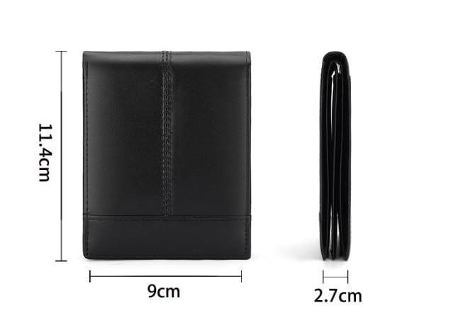 HOT ! Vintage Mens Genuine Leather Bifold Wallet RFID Blocking ID Window Card Slots Retro Design (Black)