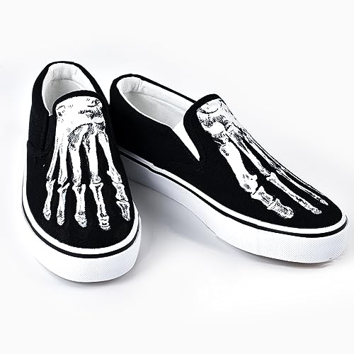 HOT ! Skeleton Feet Shoes Slip-on Hand Painted Skull Pattern Comfortable Casual Canvas Shoes Unique Customized Gifts (Men 11)