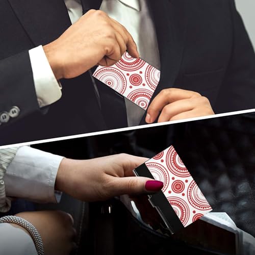 KLL Red and White Geometric Circular Pattern Slim Business Card Holders with Leather & Stainless Steel Card case for Business Meeting Use portatarjetas para Hombre 5