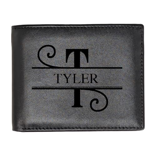 HOT ! Personalized Wallet for Men | Initial Monogram Custom Engraved Genuine Leather Bifold Wallet Birthday Anniversary Gift for Husband Boyfriend Groomsmen Dad Grandpa (Black)