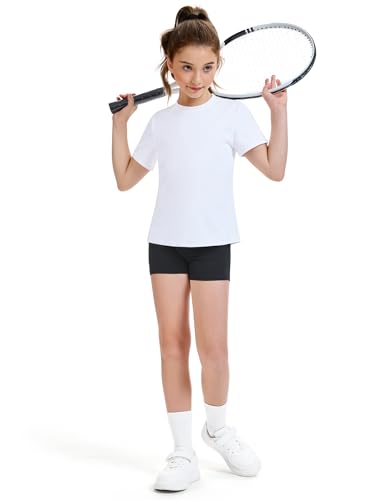 HASMES Girls Athletic Shirts Short Sleeve Active T-Shirts,Basic Tee Tops,Sports Activewear for Kids Teens 4