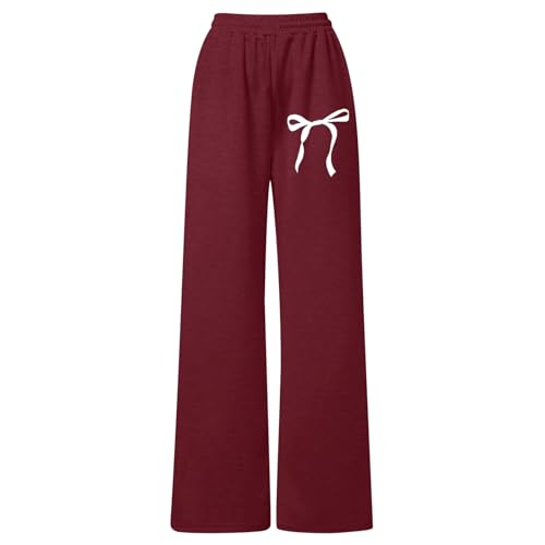 HOT ! Girls Baggy Sweatpants Bow Drawstring Wide Leg Y2k Sweat Pants Casual Loose Athletic Joggers Preppy Fall Clothes with Pockets