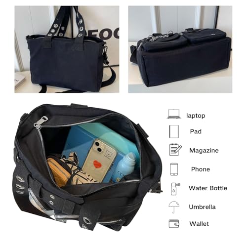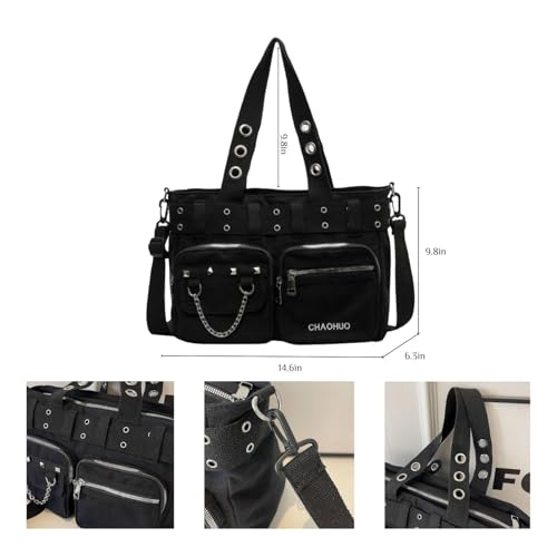 • Gothic Style:This grunge bag combines bold gothic aesthetics with practicality.Features multiple compartments to organize laptops,books,and accessories.Good as a goth messenger bag for daily use,travel,or punk-themed outfits