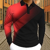 More information about Men's Gradient Geometic Polo Long Sleeve Polo Shirts Lapel Casual Street Athleisure Daily Wear 3D Print Buttons Spring Fall Winter Lake blue Yellow Red
