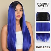 More information about Synthetic Wig kinky Straight Natural Straight Layered Haircut Deep Parting Machine Made Wig 28 inch A1 Synthetic Hair Women's Classic Comfortable Highlighted / Balayage Hair Purple