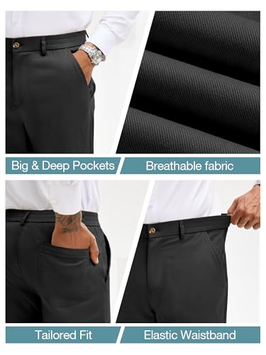 PLEPAN Men's Chino Pants Khaki - Stretch Waist Slim Fit Casual Trousers for Work Black 42W-30L 5