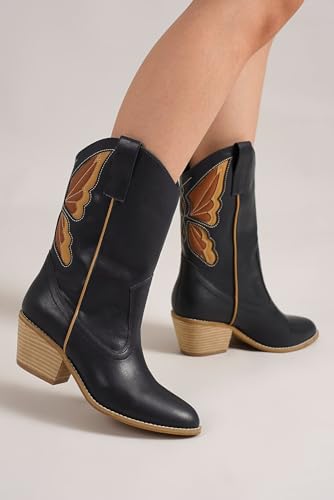 • Elegant Design Cowboy Boots: These women's Western Boots feature a Pointed toe design that adds a touch of elegance to any outfit.These eye-catching boots feature a beautiful butterfly wing design on the sides, adding a playful touch to the classic Western silhouette.