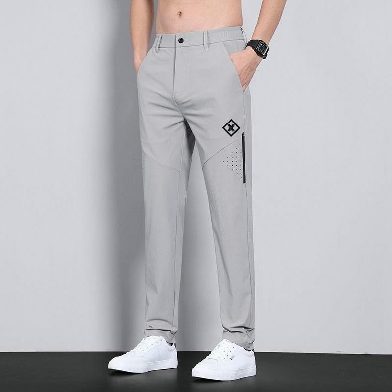 HOT ! Men's Summer Thin Ice Silk High Elastic Straight Loose Breathable Casual Pants