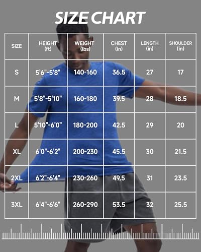 • Material: Our workout t-shirts for men are made of a blend of 95% polyester and 5% spandex.The fabric is stretchable and it feels gentle against the skin, making these shirts exceptionally comfortable to wear, even during intense workouts