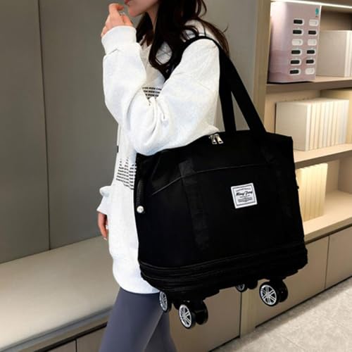 HOT ! Expandable & Foldable Rolling Duffle Bag with Wheels, Large Capacity Carry-On Luggage with Dry Wet Separation, Waterproof Lightweight Travel Weekend Bag for Women Men (Black)
